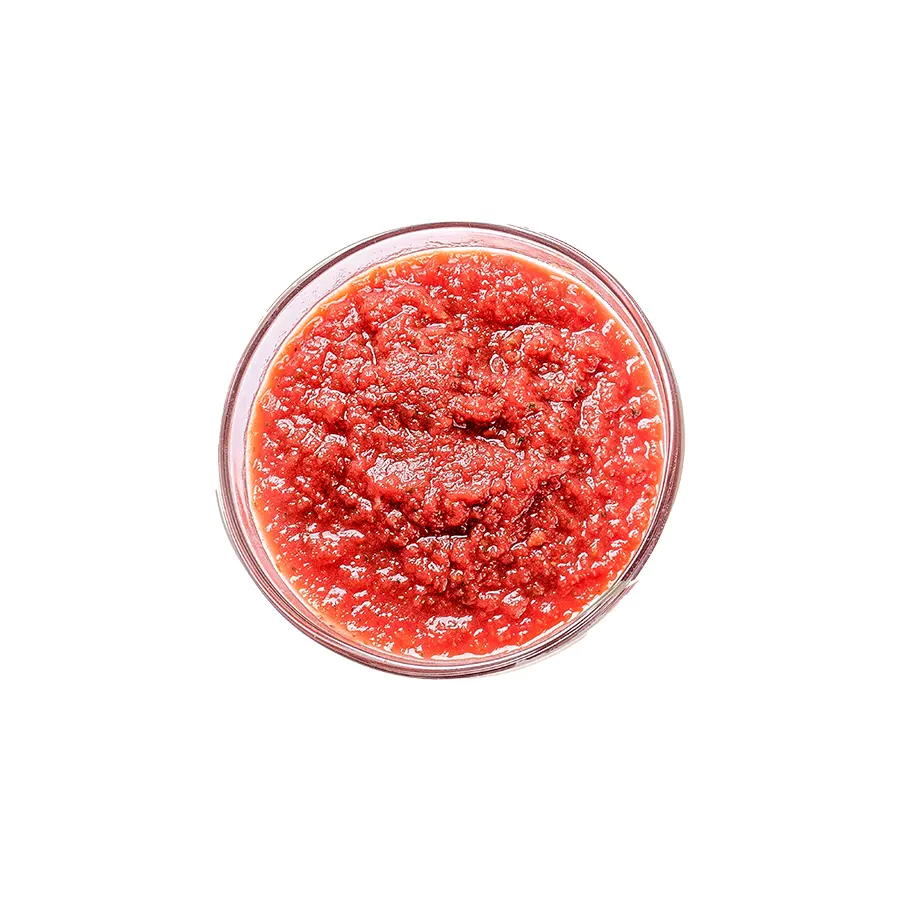 Roșii decojite, ulei de măsline, sare fină, busuioc pastă, piper negru măcinat